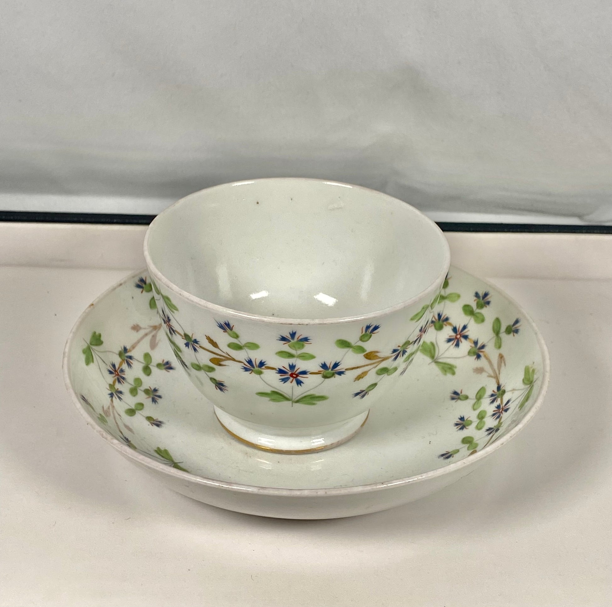 18 世纪晚期乔治王朝/摄政时期茶碗,约 1770-1830 年。在英国制造业的早期,瓷器制造商并不总是有标记。然而,它们的风格和所用瓷器的类型(典型的英国软瓷)可以追溯到 18 世纪晚期,这使得这些作品变得稀有和令人向往。它们可能是 New Hall 或 Caughley 的作品,装饰有精美的花卉图案和树叶图案。