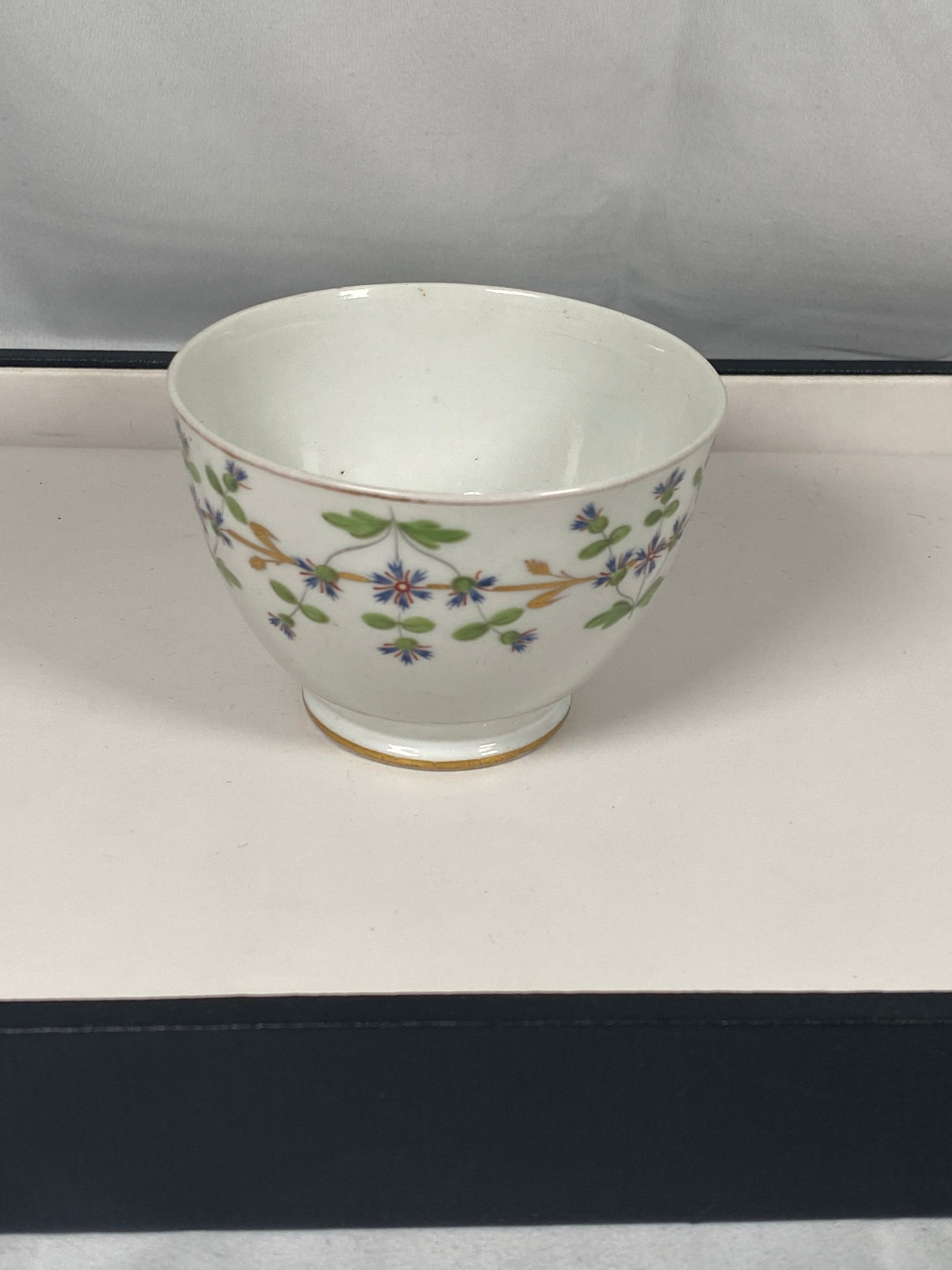 18 世纪晚期乔治王朝/摄政时期茶碗,约 1770-1830 年。在英国制造业的早期,瓷器制造商并不总是有标记。然而,它们的风格和所用瓷器的类型(典型的英国软瓷)可以追溯到 18 世纪晚期,这使得这些作品变得稀有而令人向往。它们可能是 New Hall 或 Caughley 的,装饰有精美的花卉图案和叶子图案。