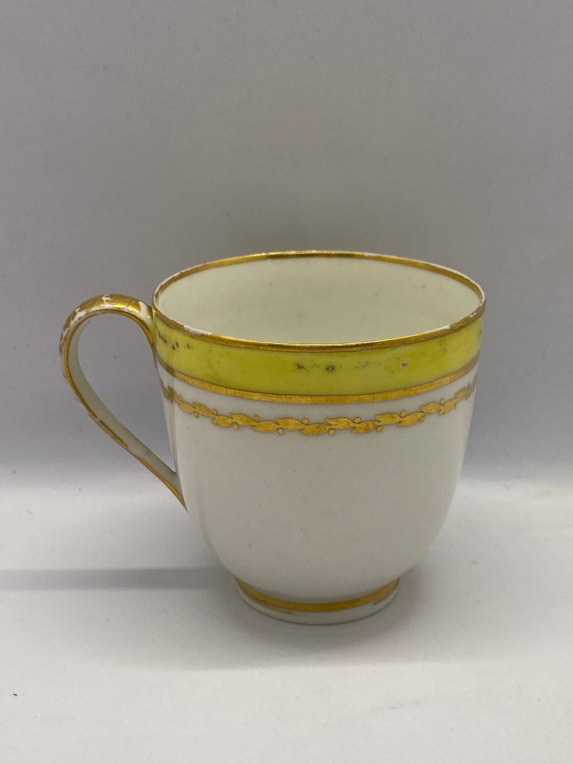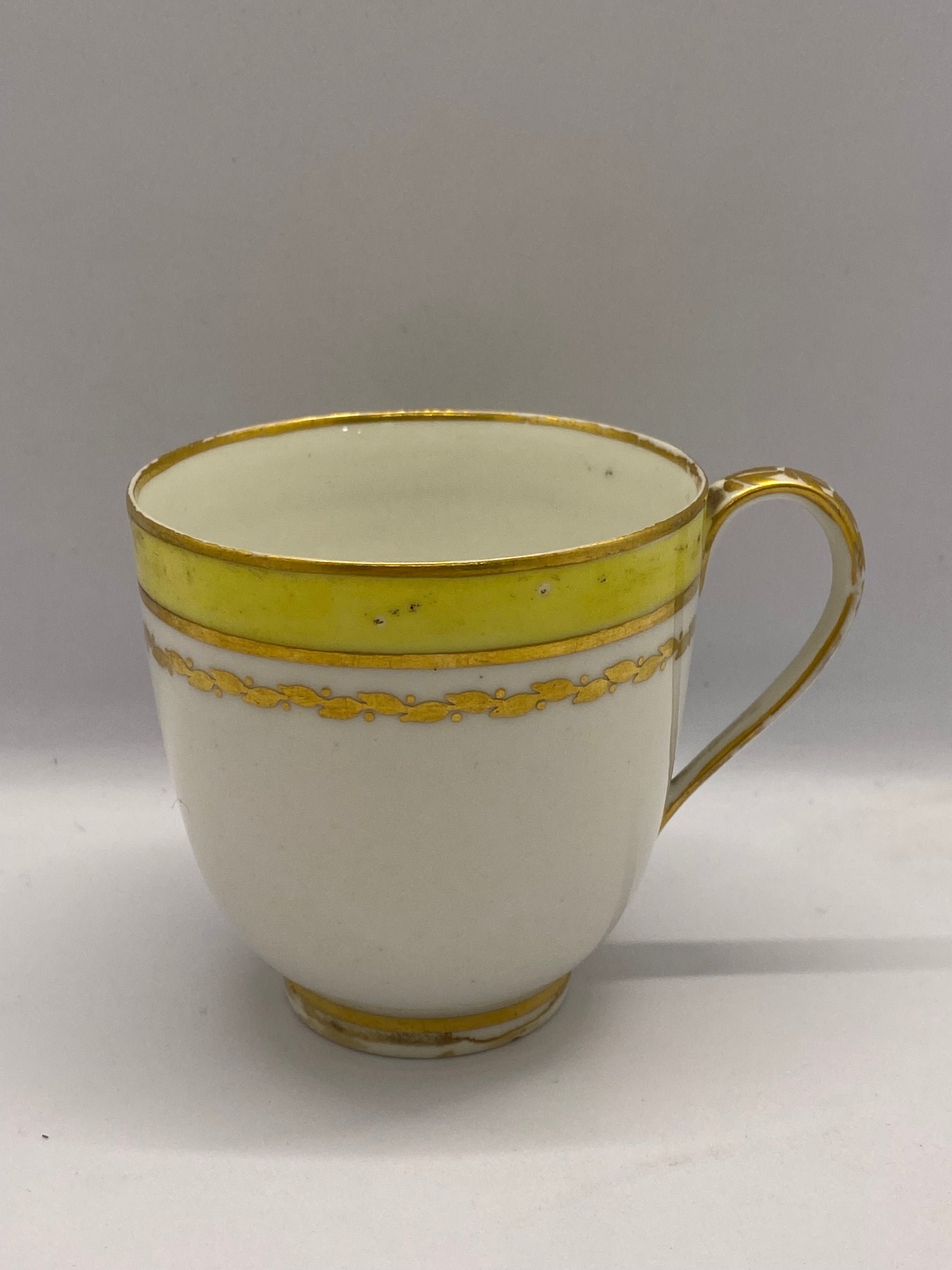 古董乔治亚早期德比瓷黄色咖啡杯(2 件可用)