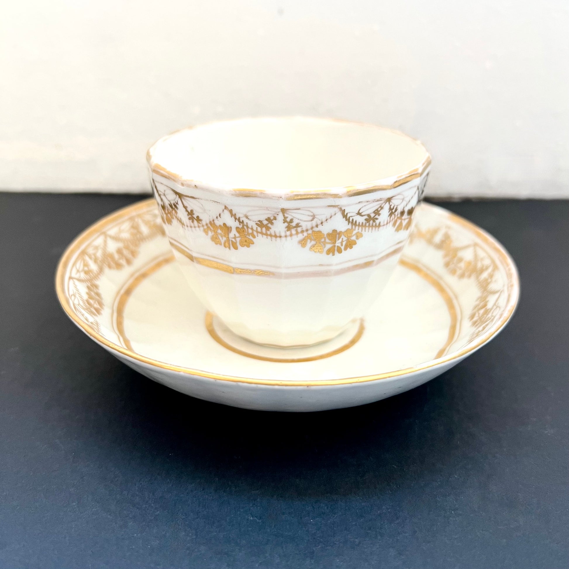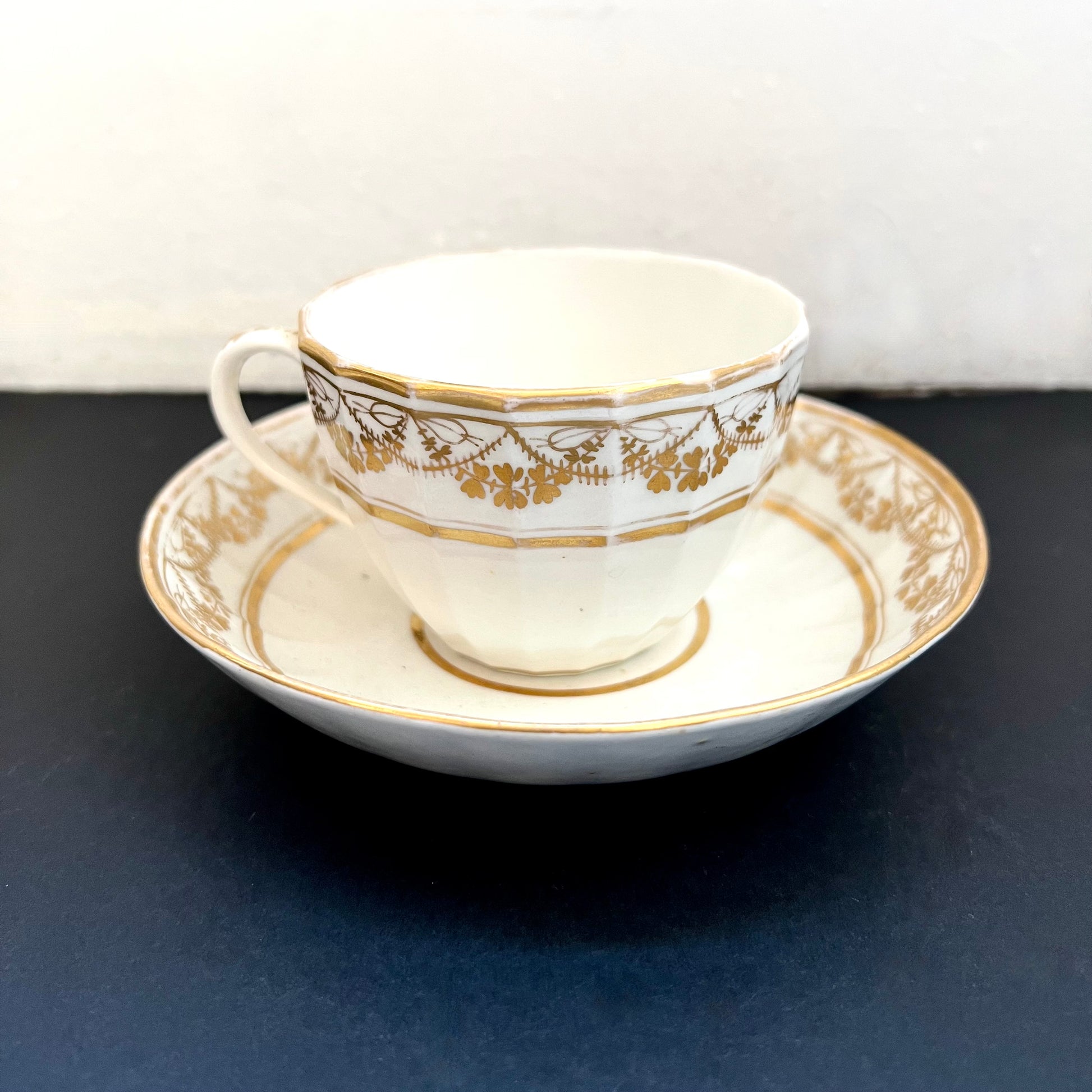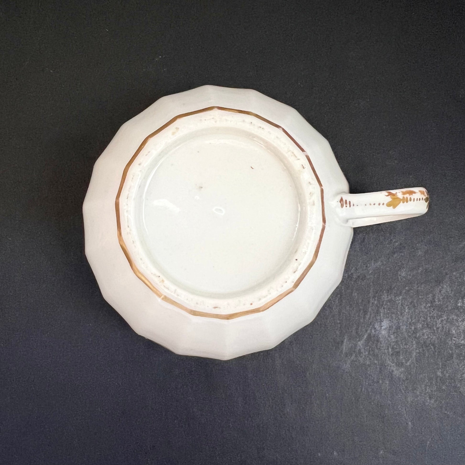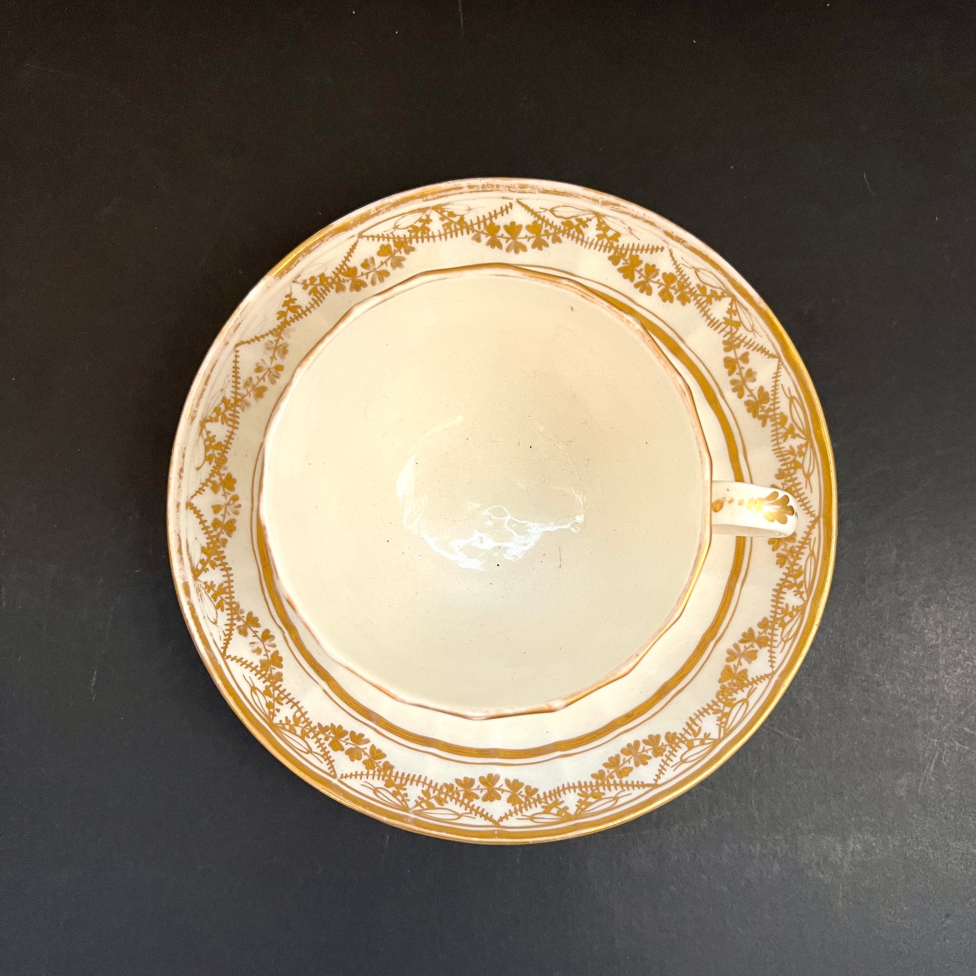 古董无标记摄政时期英国瓷器布特茶杯和茶碟,凹槽主体