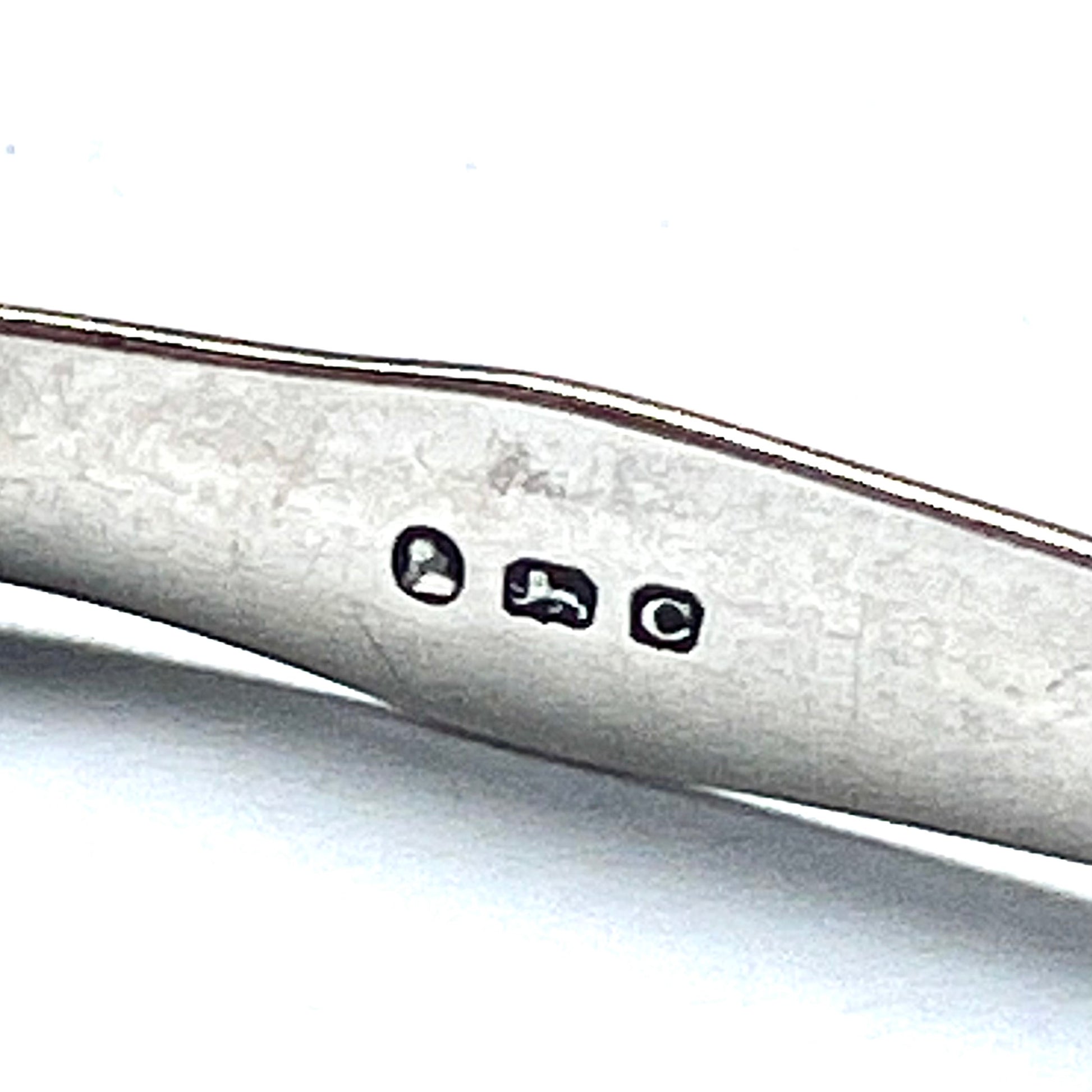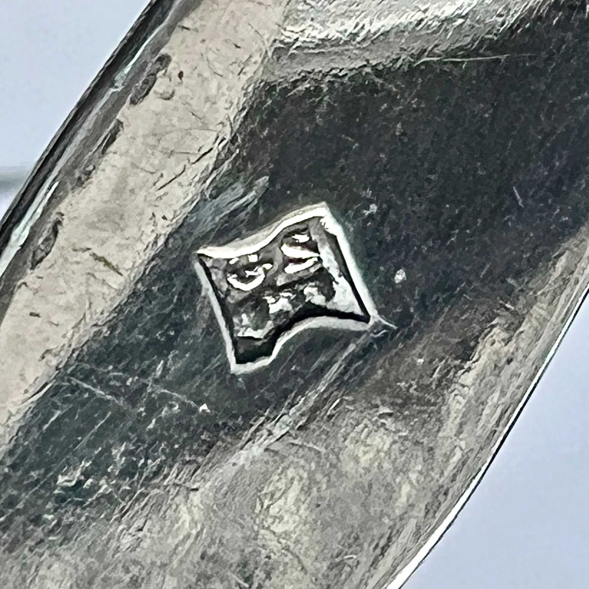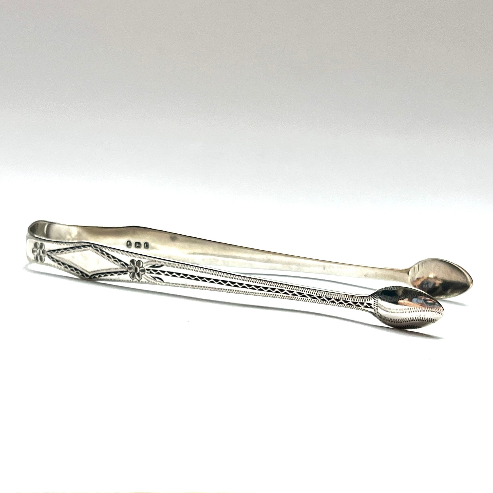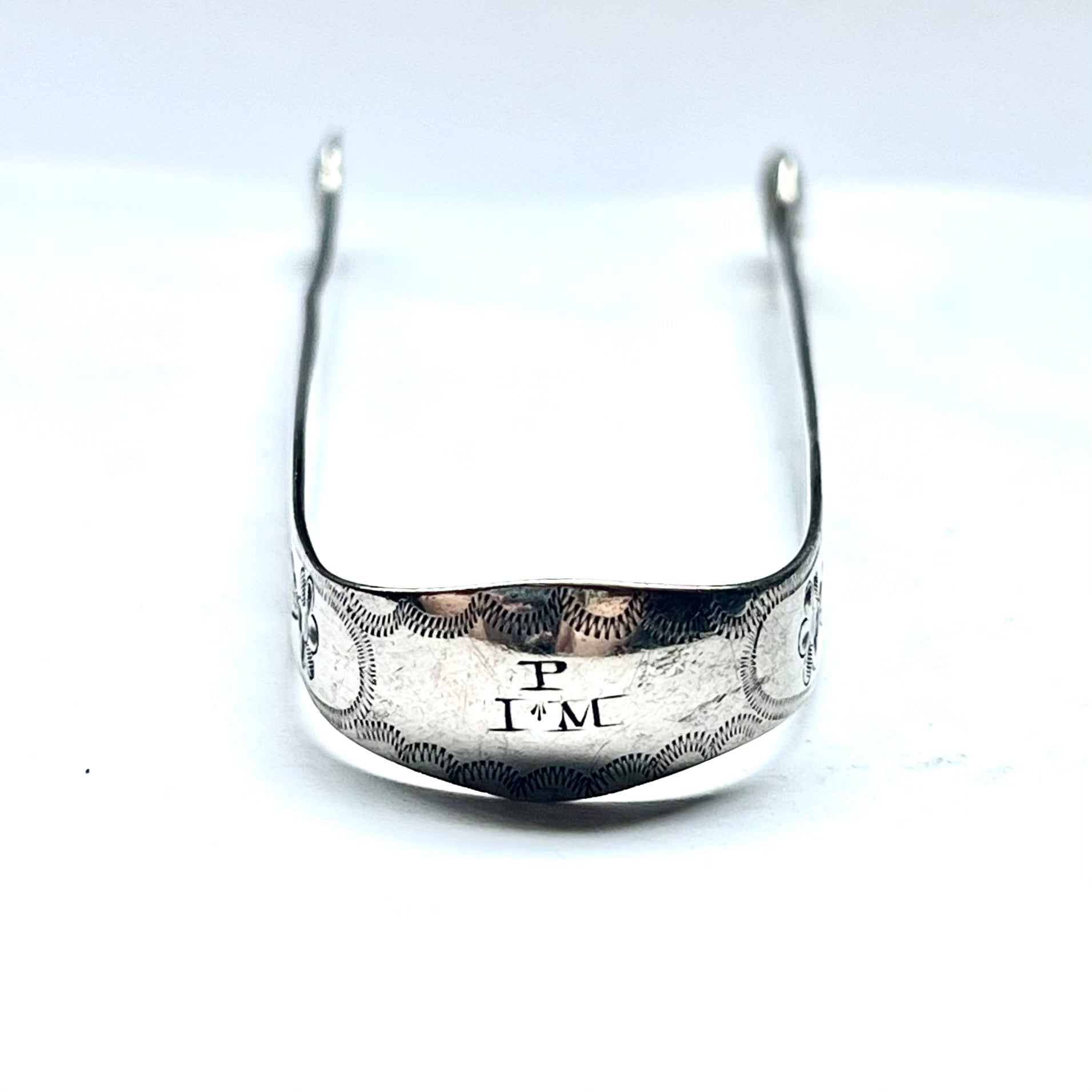 根据这些钳子的乔治亚风格设计元素以及赞助商标志的饰框,这个标志很可能是乔治·史密斯二世和托马斯·霍伊特的标志,他们是这个时期杰出的银匠,他们的合作关系从 1791 年持续到 1804 年。他们以其质量而闻名,这些钳子上可爱的明亮切割图案就是一个例子。