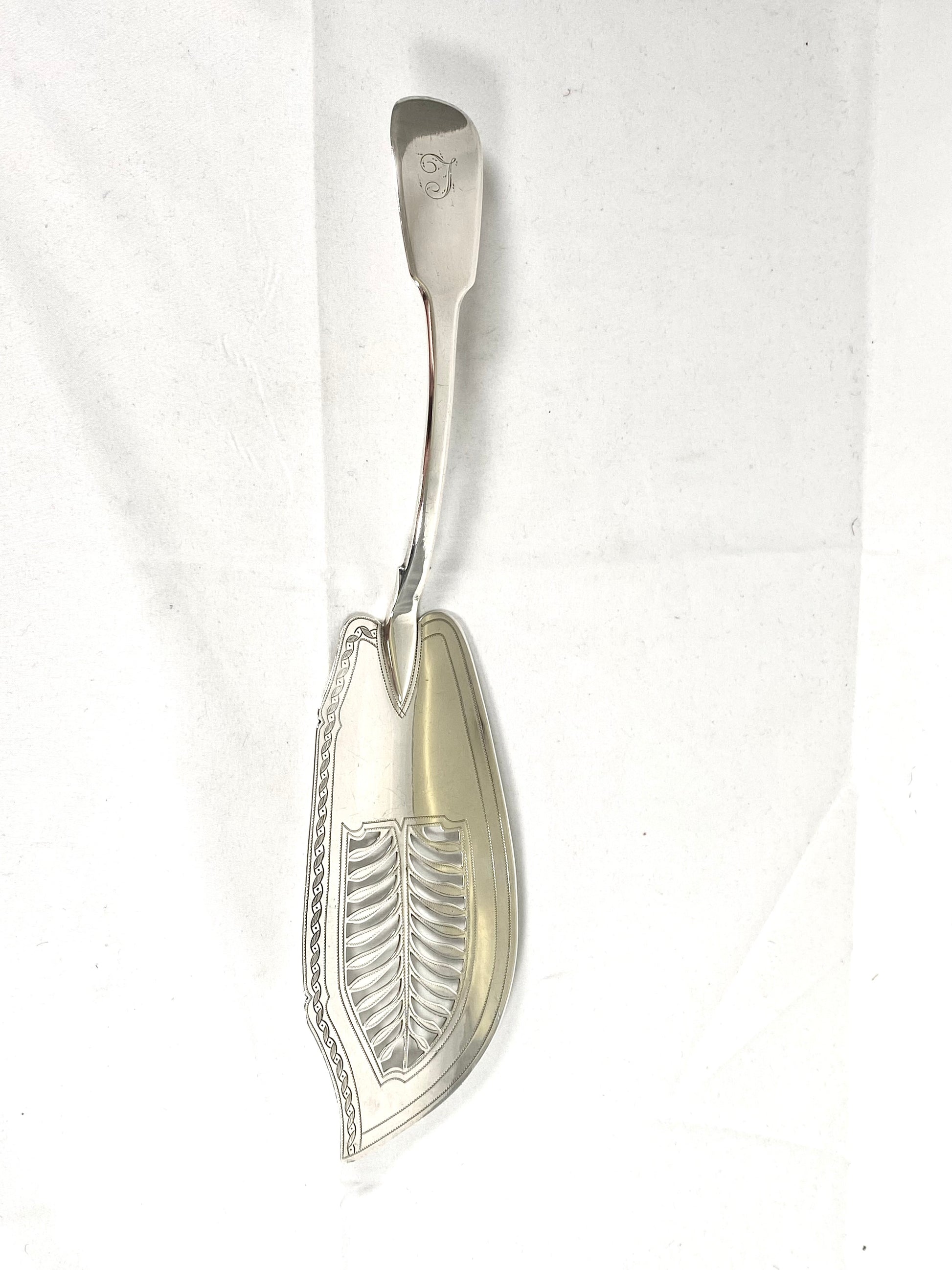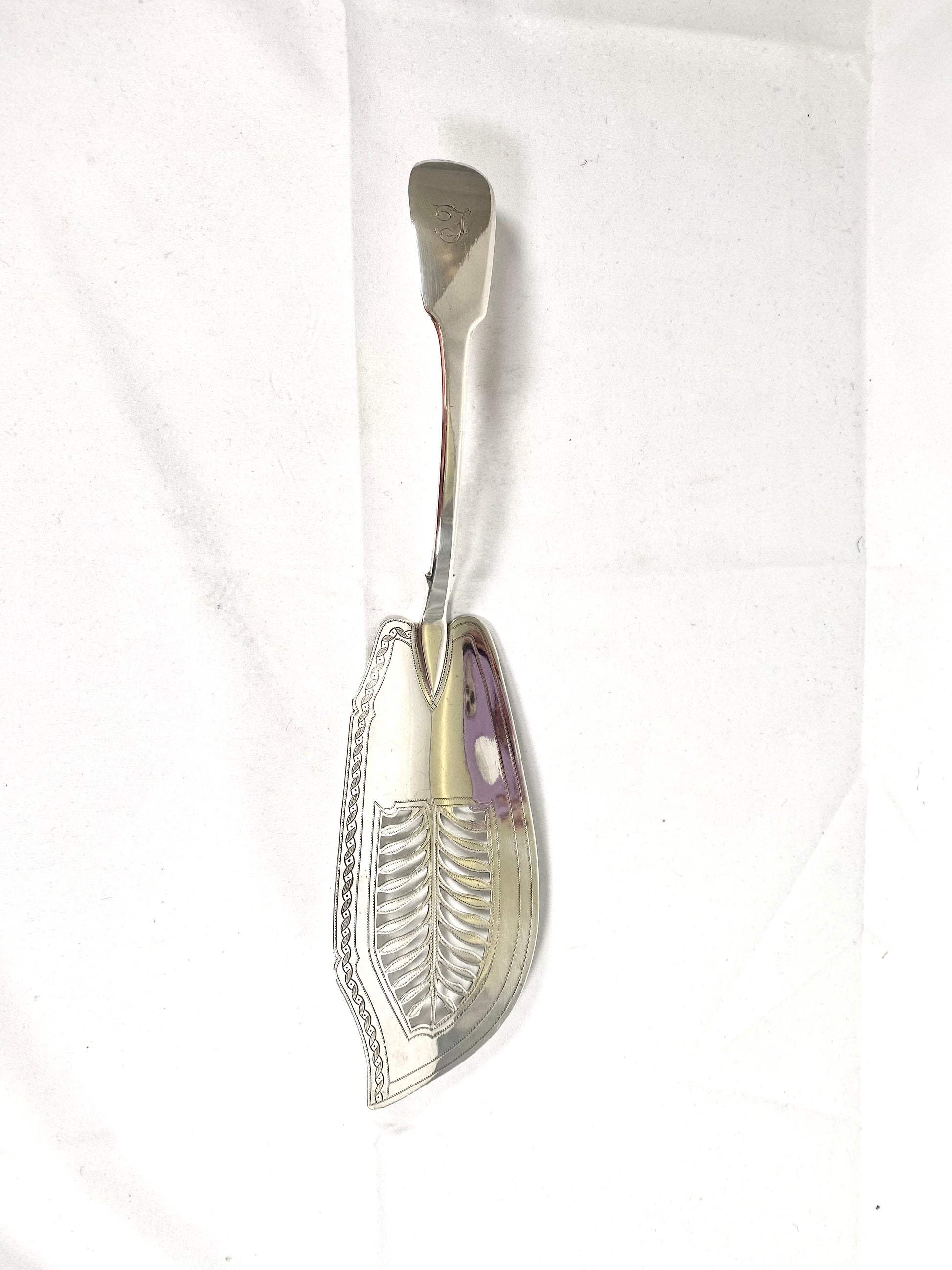一件精美的纯银乔治三世摄政时期鱼片,上面有艾丽斯和乔治·伯罗斯二世的标记。伦敦的检验标记,1811 年。这是一件精美的作品,艾丽斯·伯罗斯是她那个时代杰出的银匠,在前维多利亚时代的英国非常罕见。她是乔治·伯罗斯的遗孀,在乔治·伯罗斯去世后,她于 1801 年与儿子建立了合作关系。她一直是一名活跃的铁匠,直到 1819 年去世。