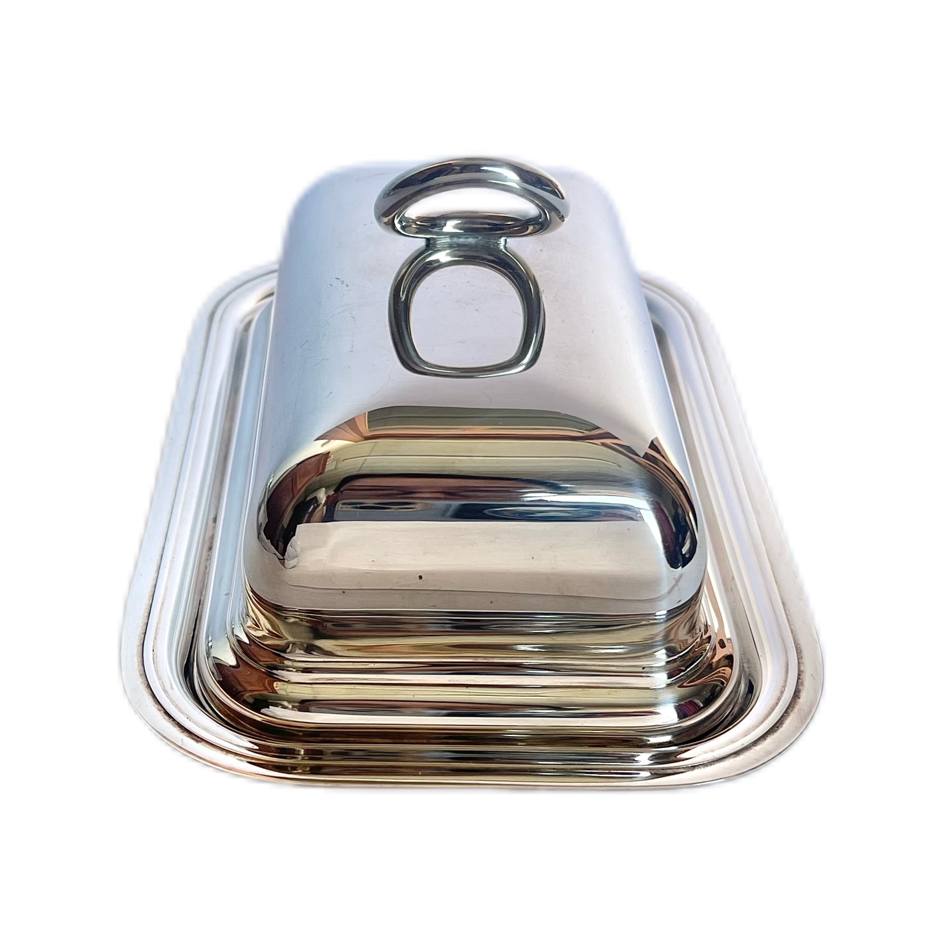 Here we have an iconic vintage Vertigo butter dish by Christofle, a silver-plated design by iconic French interior designer Andrée Putman.