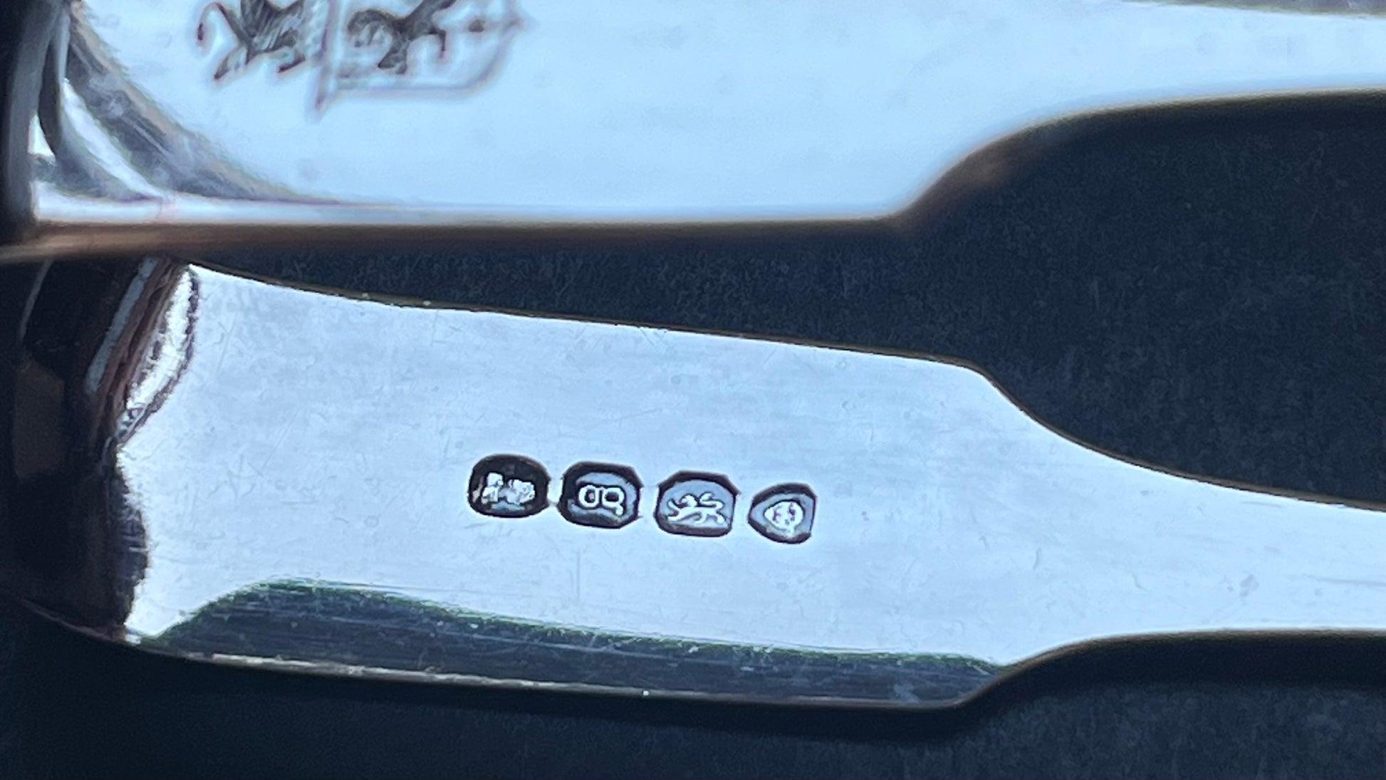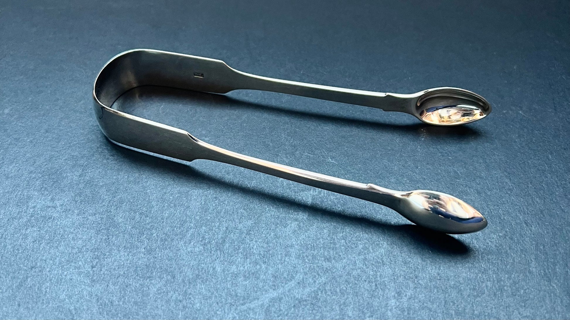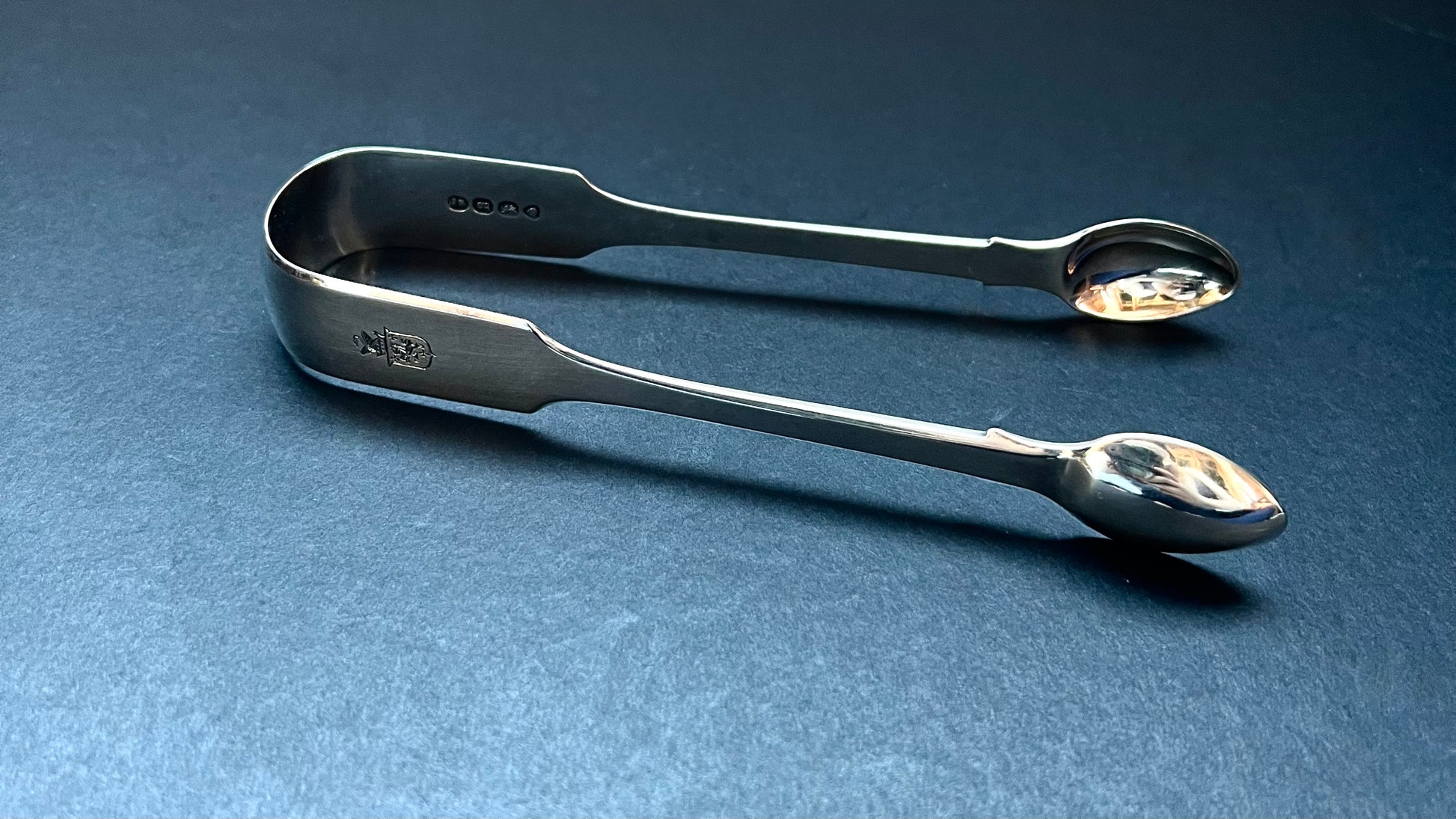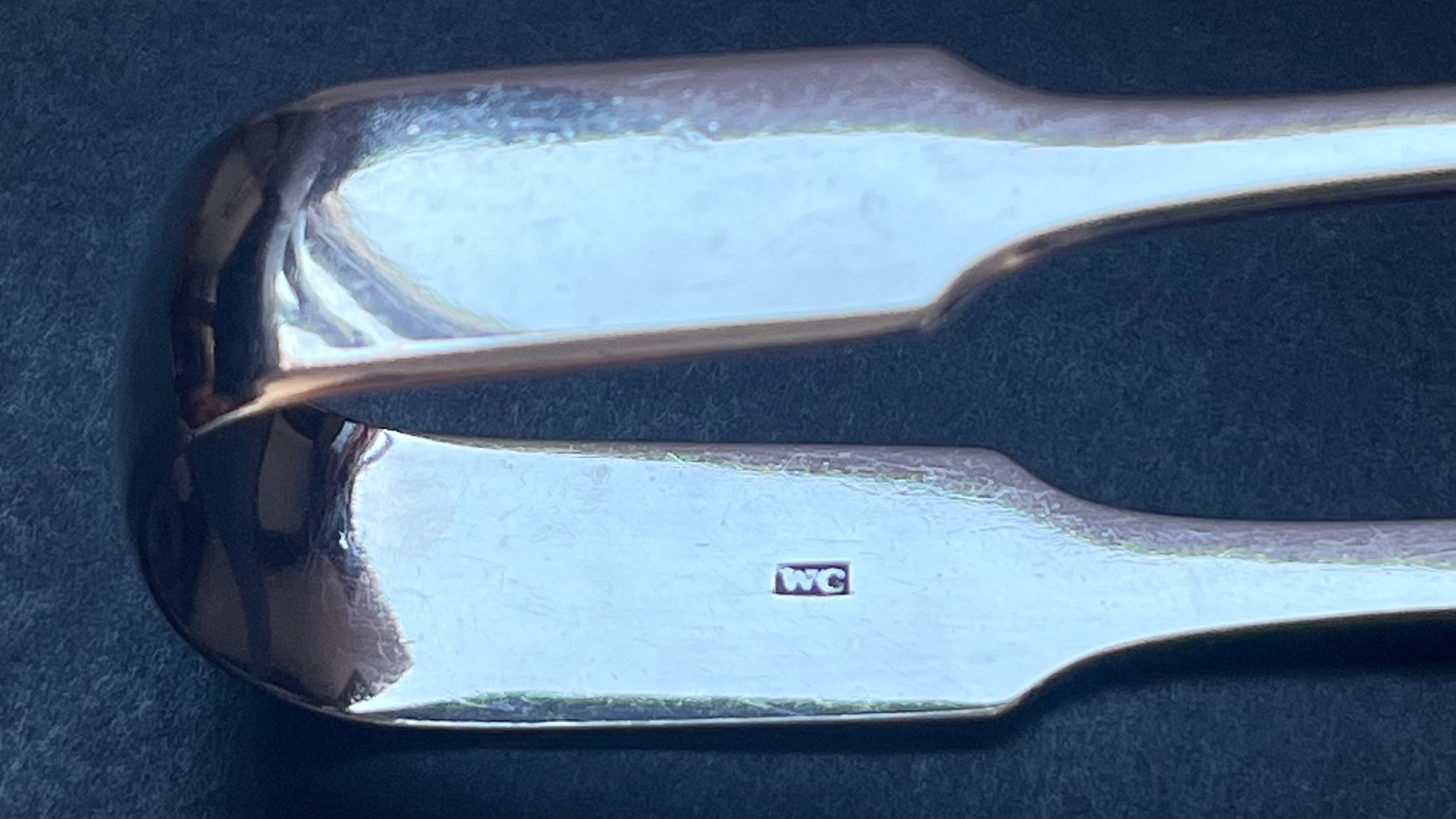 乔治亚晚期纯银钳子,带冠饰,威廉·乔纳二世 (William Chawner II),伦敦 1822 年。