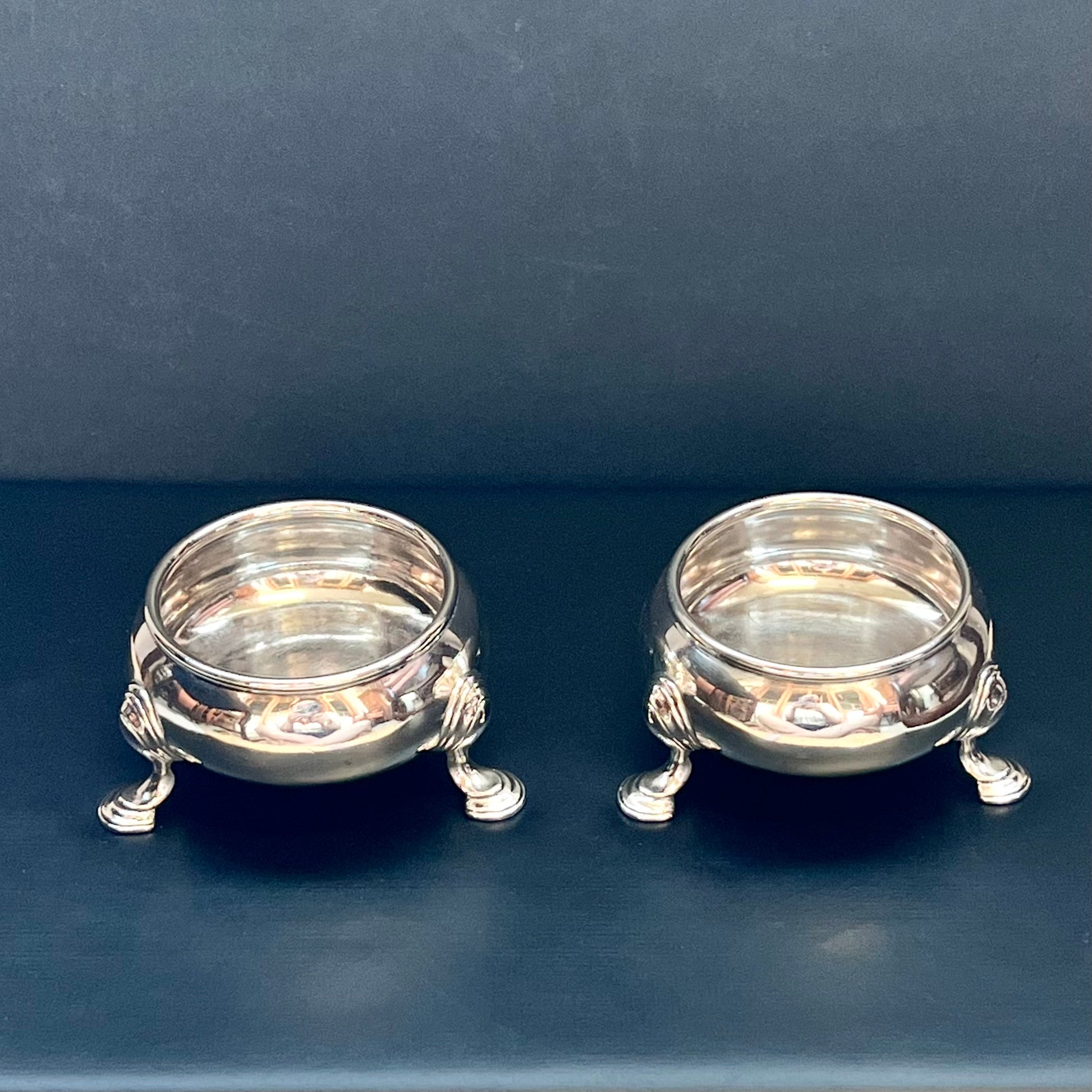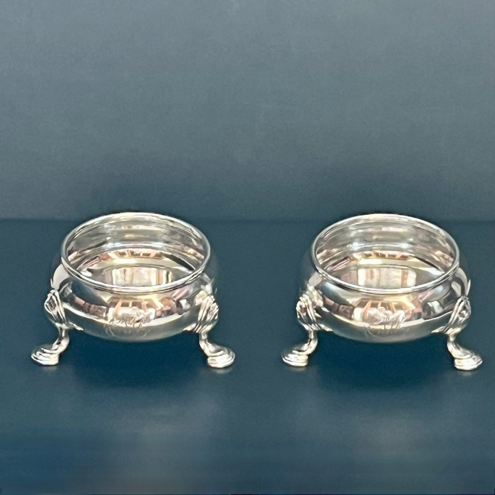 这里有一对可爱的乔治亚时期纯银盐瓶,由伦敦银匠彼得·波迪奥 (Peter Podio) 制作。