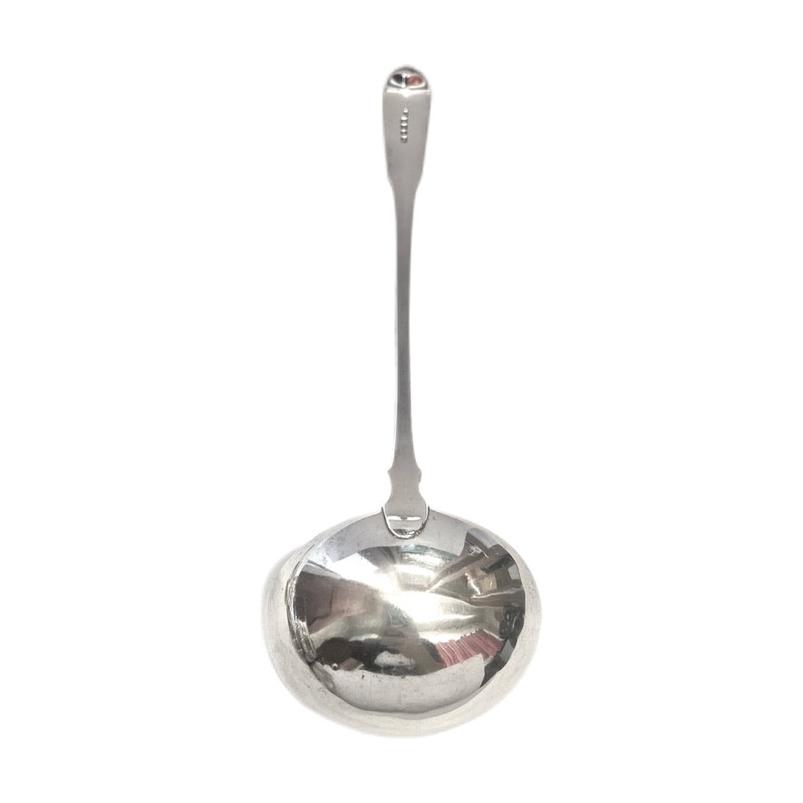 Elegant large sterling 57th West Middlesex “Albuhera” regimental silver serving ladle with marks for London, 1802, William Sumner I. This mark was used from 1784 to 1803. The ladle is substantial and of thick gauge, as well as of great historical significance.