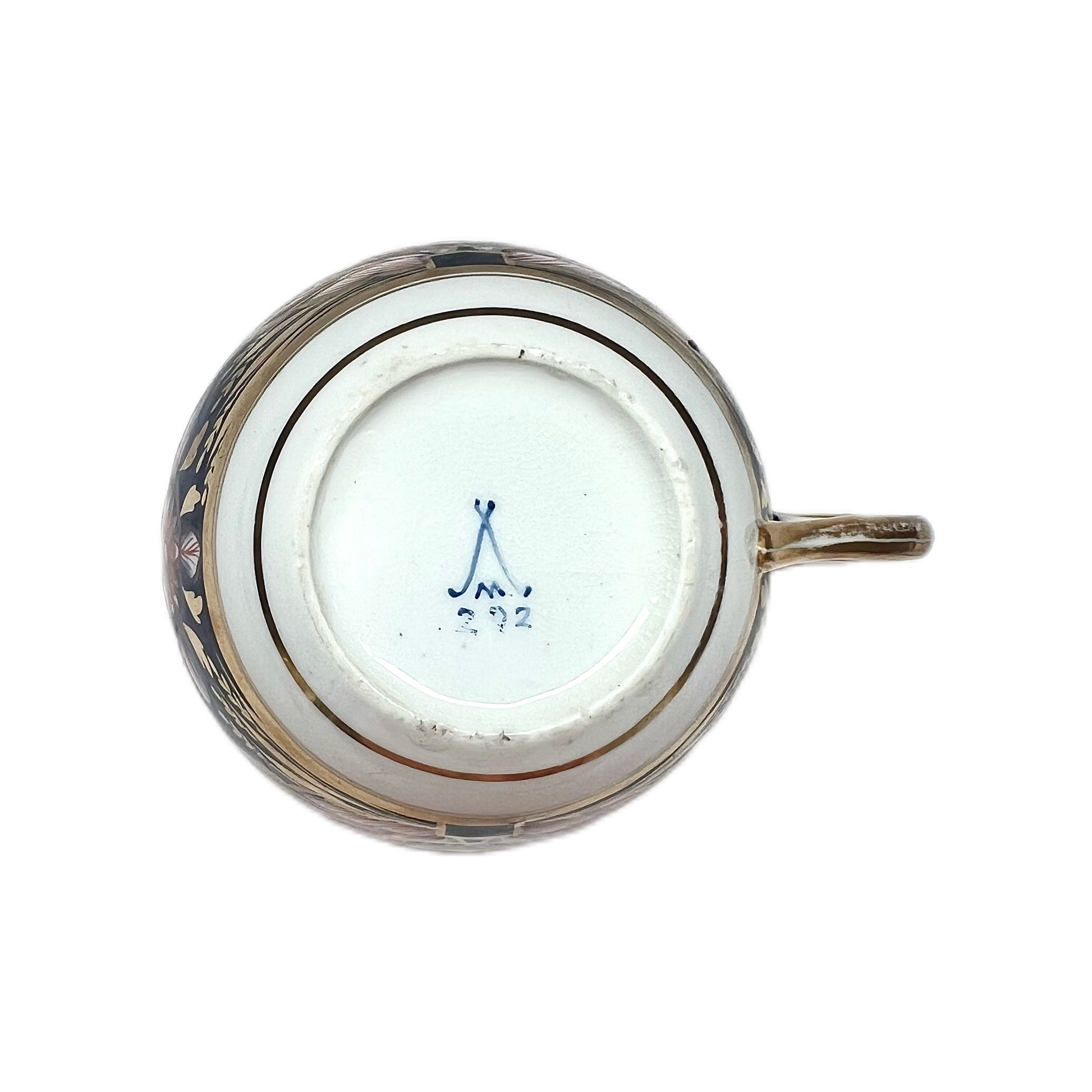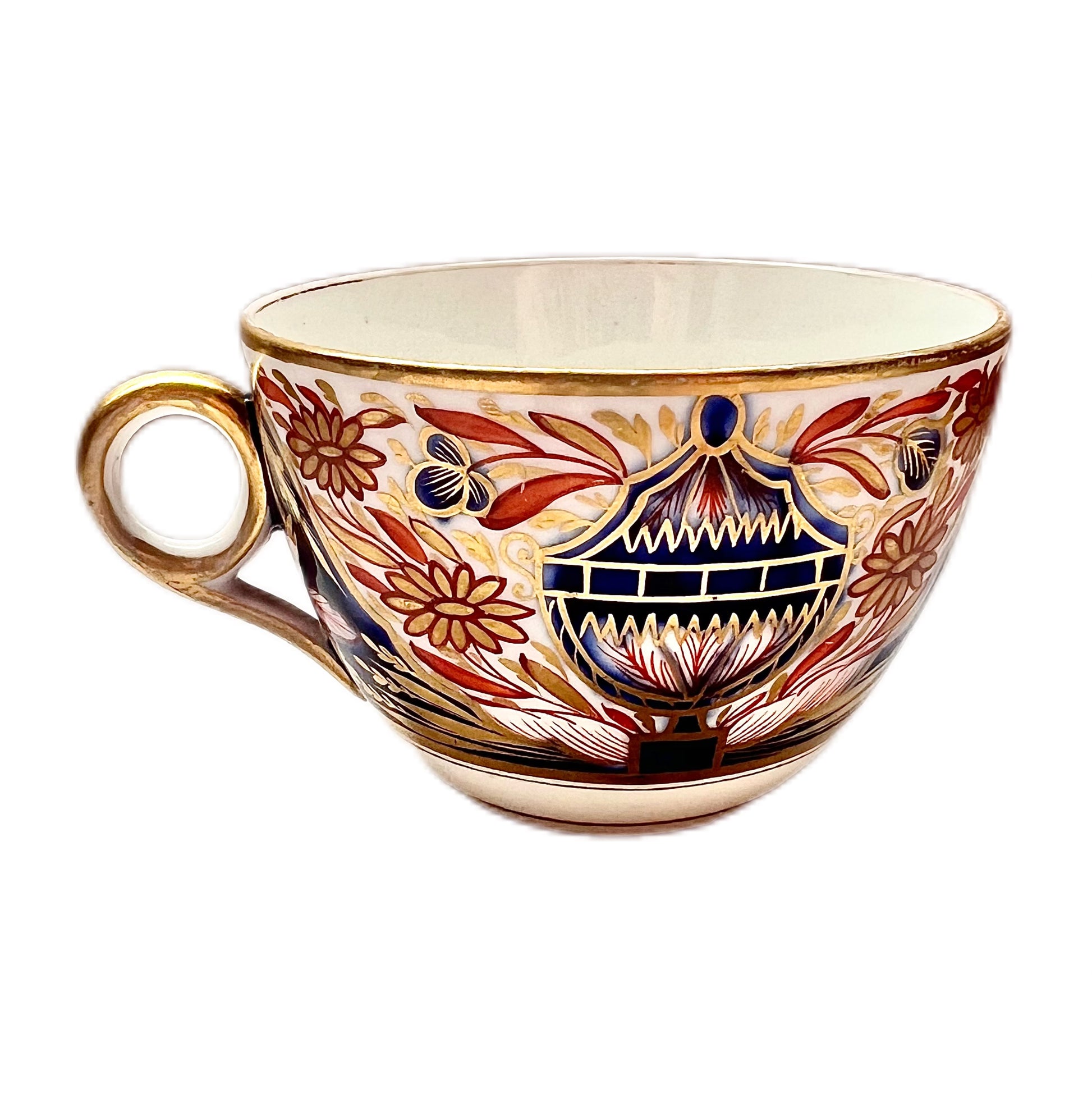 A beautiful Regency period Minton hard paste porcelain Bute shaped teacup with ringhandle. Bearing a Minton backs stamp that was used circa 1805-1816. Intricately handpainted with Imari style colouration with a neo-classical lyre pattern.