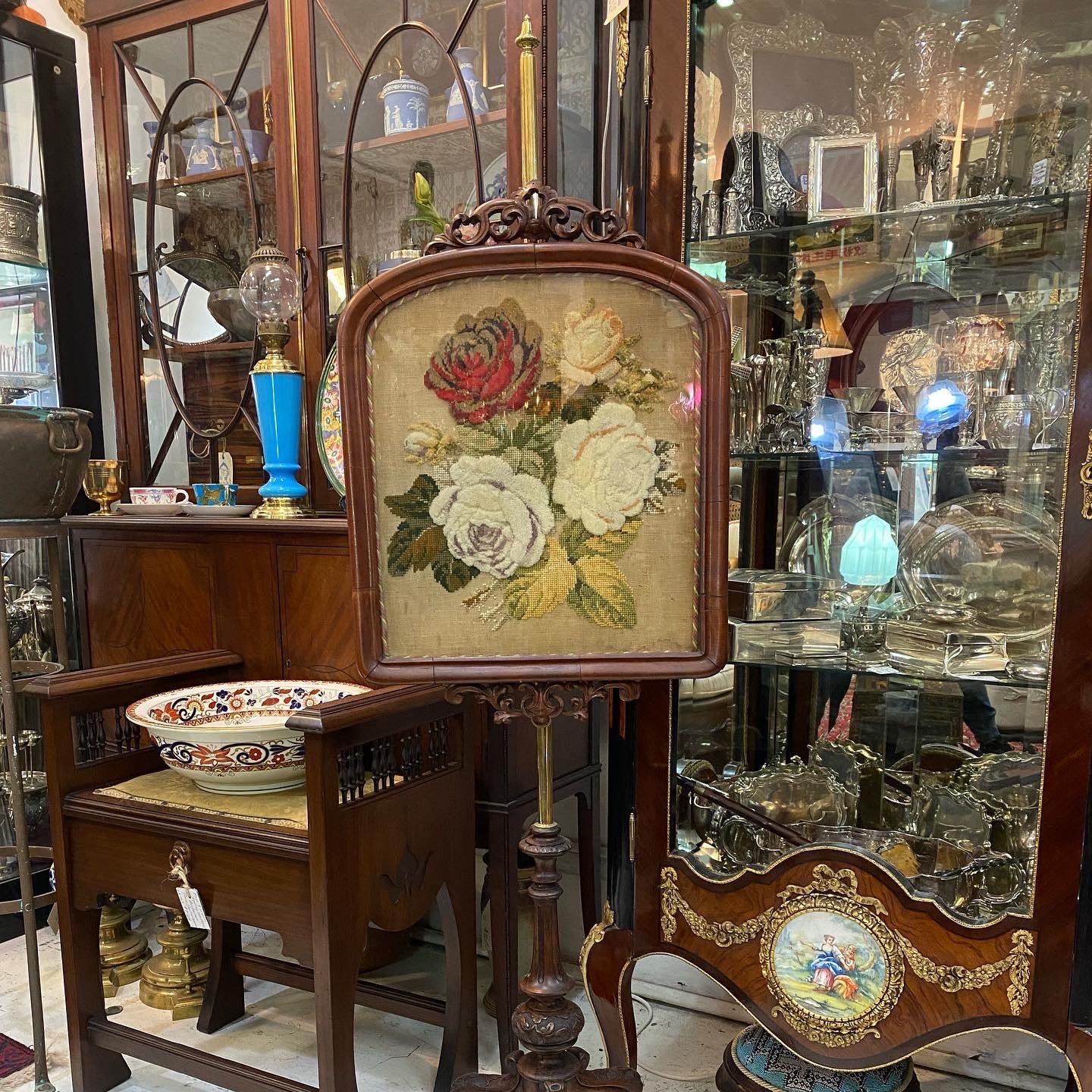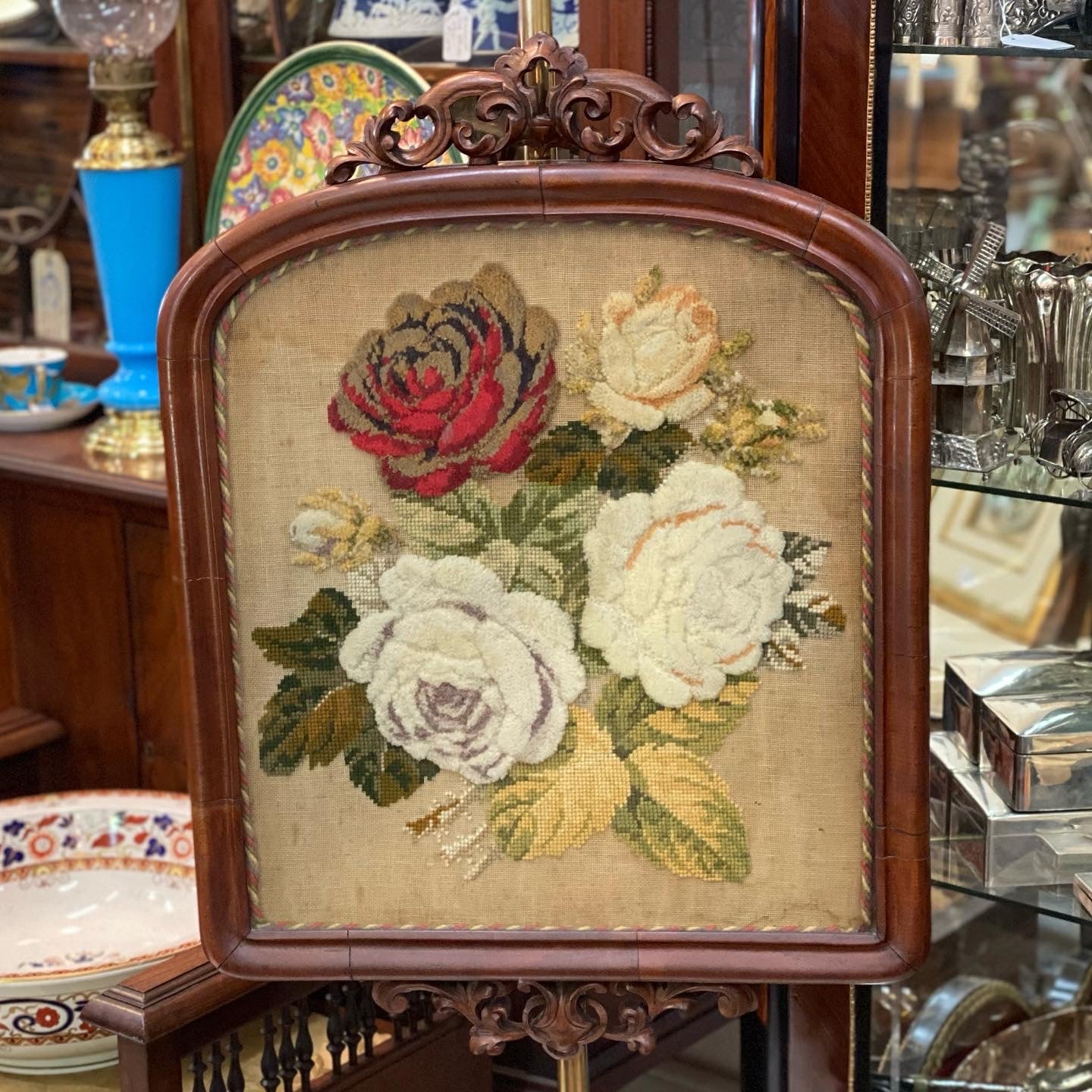 令人惊叹的玫瑰挂毯英国摄政时期至维多利亚时期防火屏风