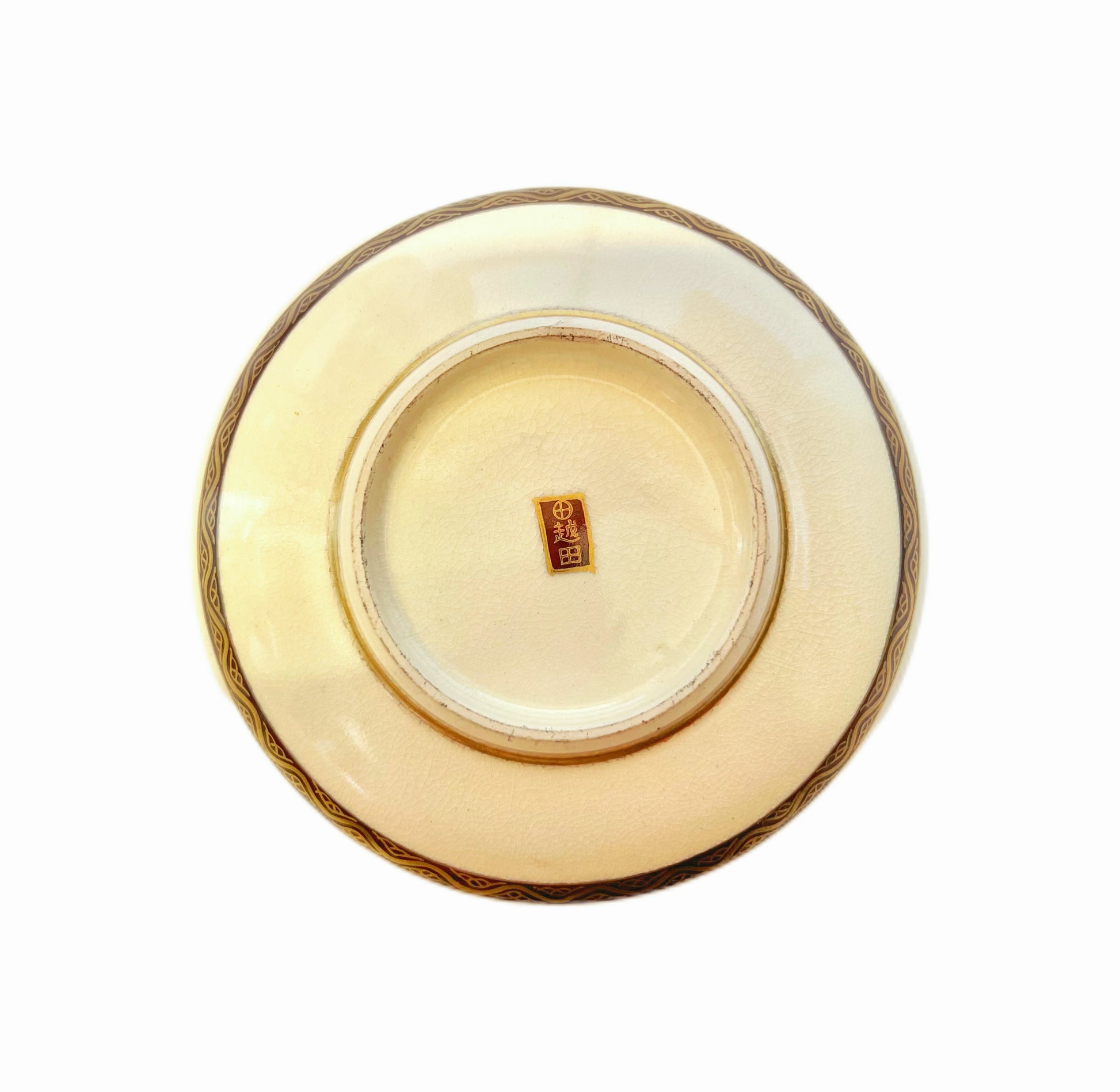 Koshida backstamp with red and black enamels as well as gilt details to base.