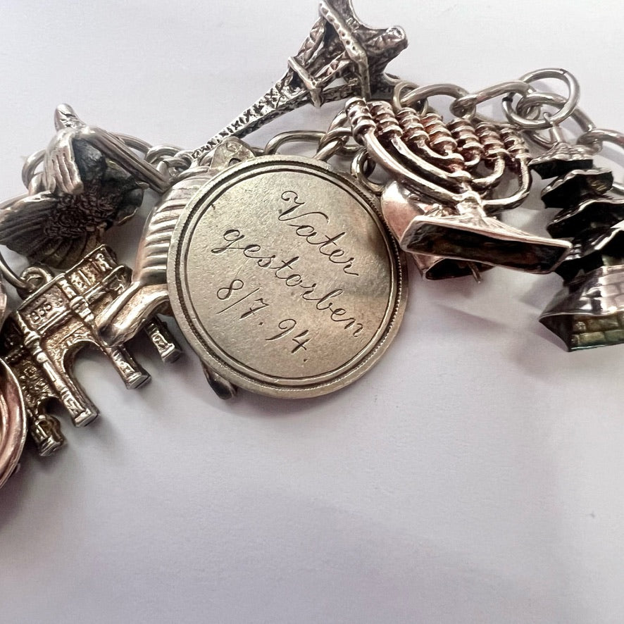 Excellent vintage condition with minor wear overall commensurate with age, marks crisp and clear. Some charms unmarked but tested as silver.